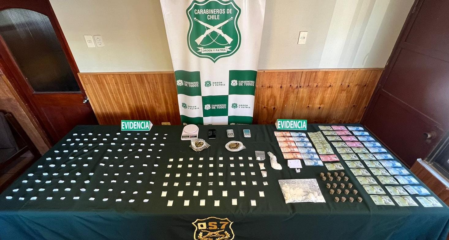 En el operativo Carabineros del OS7 incautó cerca de 2.300 dosis de pasta base, cocaína, marihuana y ketamina, con un avalúo aproximado de 11 millones de pesos