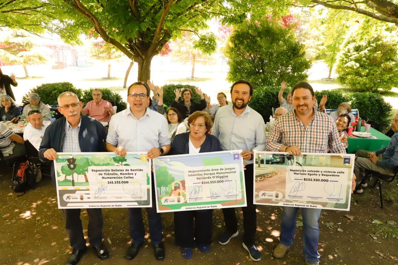 En tanto, el gobernador se refirió al trabajo colaborativo para avanzar en la ejecución de iniciativas para la comunidad chillanvejana. ‘Importantes proyectos estamos financiado para el municipio de Chillán Viejo, se nota el trabajo mancomunado que estamos haciendo con ese municipio, que nos permite hoy invertir en diversas áreas, particularmente en recuperación de espacios públicos, como va a ser en el parque O’Higgins, que es un lugar muy visitado, donde vamos a hacer nuevos juegos, vamos a hermosear ese sector, iluminación. Lo mismo va a ocurrir con algunas señaléticas que van a permitir recuperar lugares muchos más visibles para las personas que viven ahí. Por lo tanto, aquí hay un trabajo mancomunado que va permitir invertir cerca de 500 millones de pesos en una ejecución que esperamos se desarrolle el primer semestre del próximo año’, señaló la autoridad regional.
